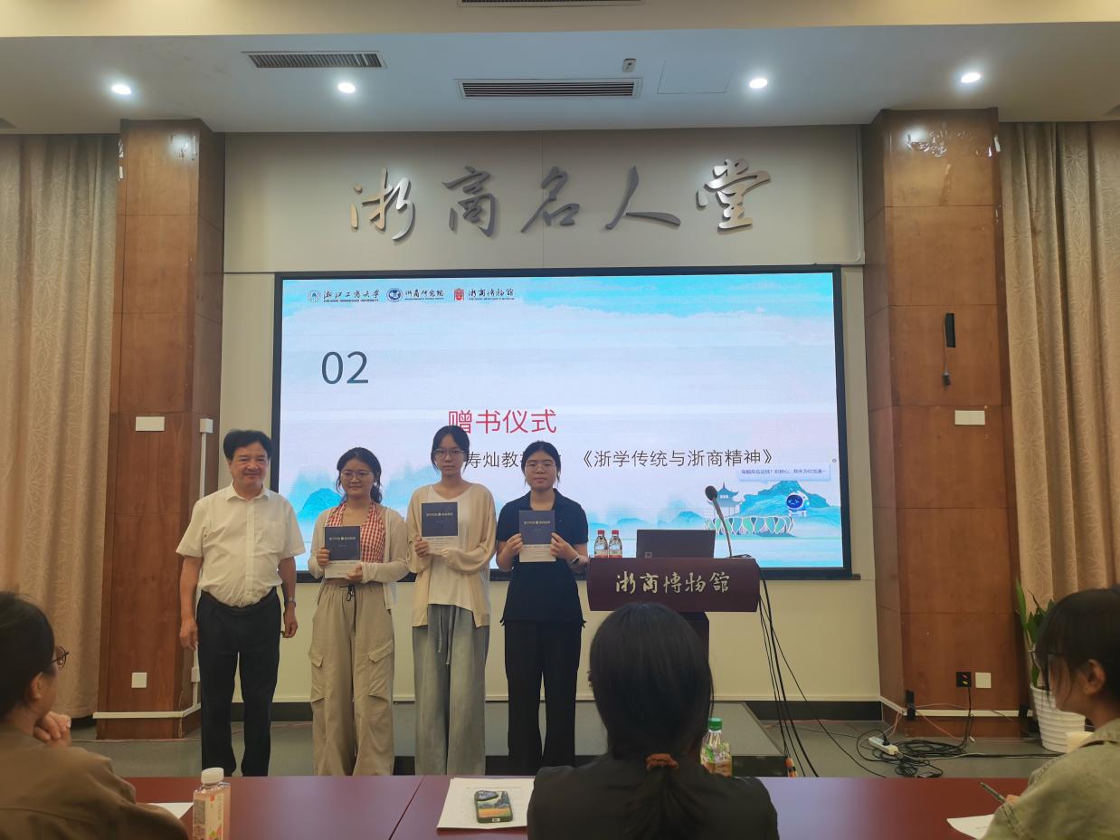 开班仪式上,举行了《浙学传统与浙商精神》赠书仪式,为学生深入了解浙商文化提供理论指引。这本著作系统梳理了浙学的渊源、精神特质及其与浙商文化的内在关联,为学生们深入了解浙商文化的深层内涵提供了重要的理论指引。
