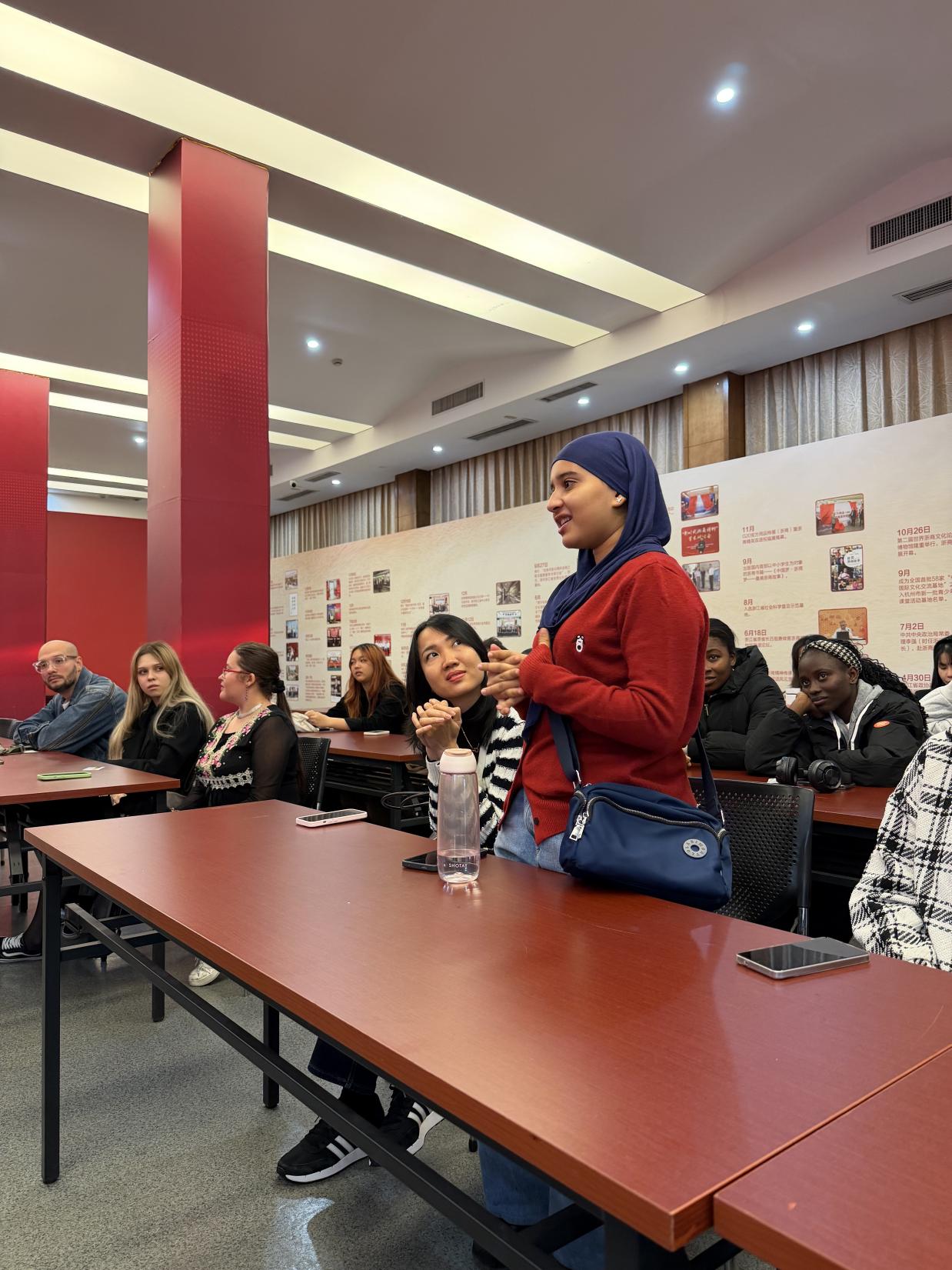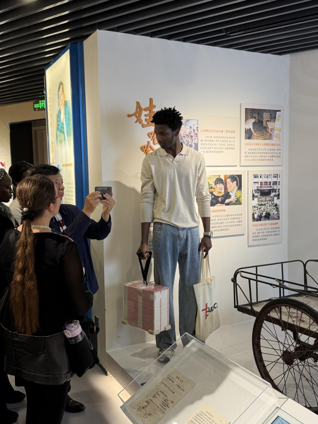 在王国安教授的热情的讲解下,留学生们系统领略了浙商的精神图谱。从浙江大地源远流长的历史文化基因,到改革开放浪潮中“敢为天下先”的突破创新勇气;从马云、李书福等标志性企业家跌宕起伏、波澜壮阔的创业传奇,到浙商“地瓜经济”模式下纵横全球的战略布局;从乡村振兴征程中携手共进的共同富裕实践,到以杭州“六小龙”为代表的前沿科技创新生态……博物馆内,一幅幅珍贵照片、一件件历史展品、一个个创业故事,生动地诠释了浙商“四千精神”(走遍千山万水、说尽千言万语、想尽千方百计、吃尽千辛万苦)在新时代的丰富内涵。参观过程中,留学生们被深深吸引,沉浸式感受浙江创新生态和浙商精神的独特魅力,对浙商的创业精神和智慧表示高度赞赏。