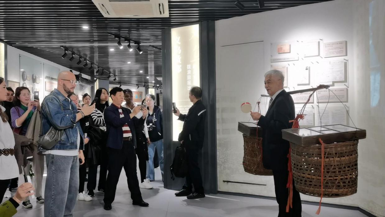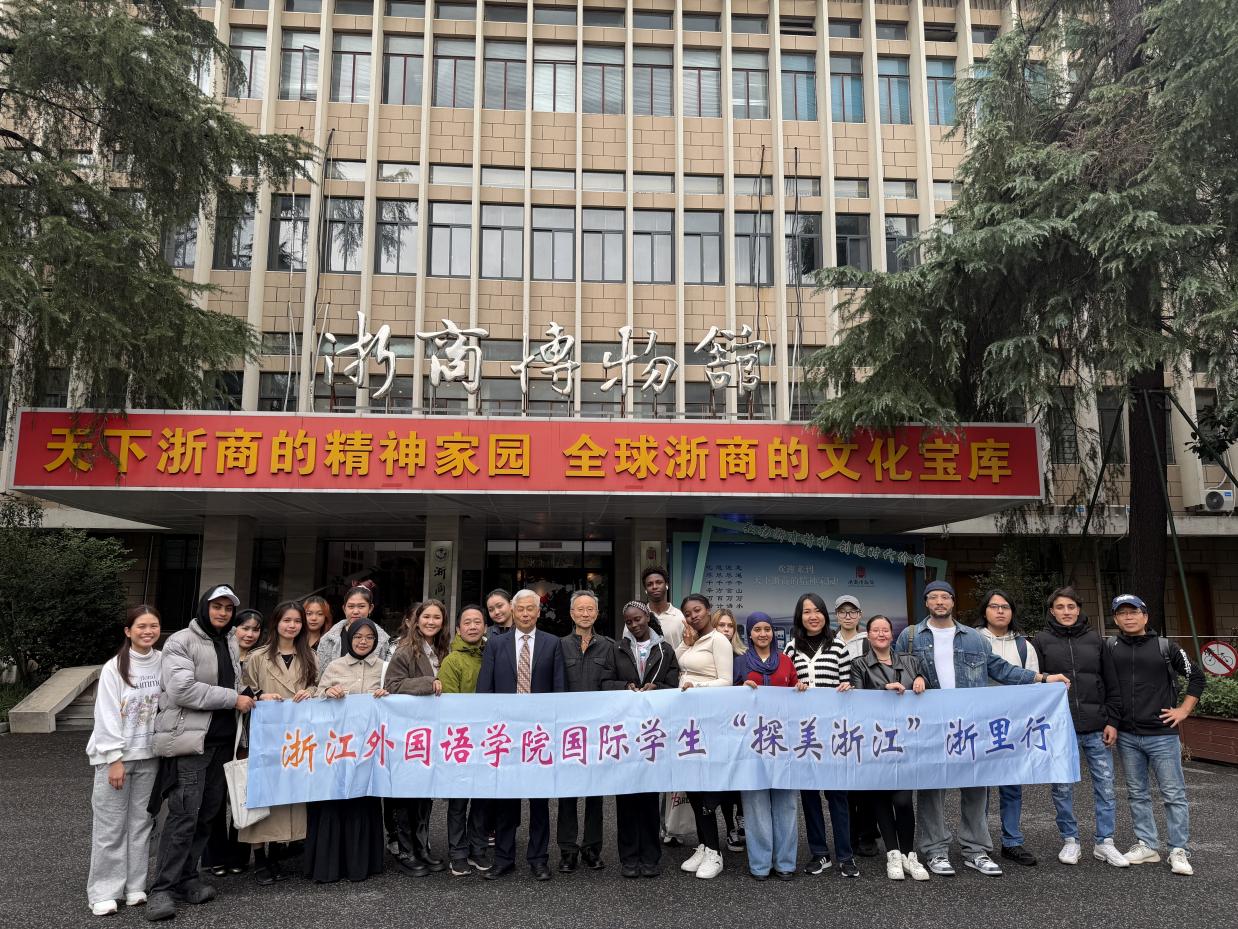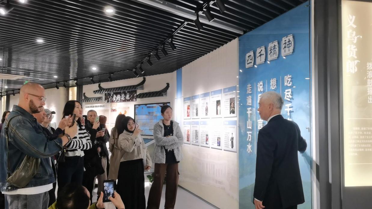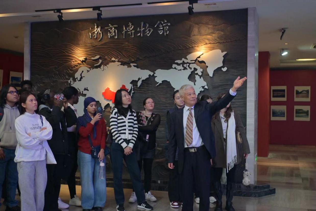 10月31日,来自浙江外国语学院十多个国家的近三十多名留学生走进浙商博物馆开展深度参观交流。浙江工商大学知名经济学教授王国安全程以英文细致解说。