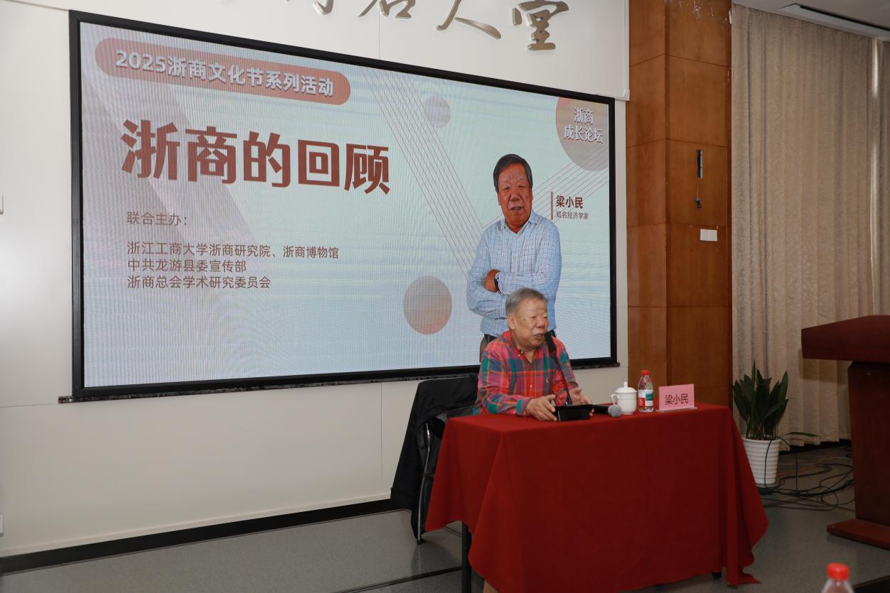 11月5日上午,由浙江工商大学浙商研究院、浙商博物馆、中共龙游县委宣传部、浙商总会学术研究委员会联合主办的“浙商对话晋商——从商帮文化看浙商成长”论坛在浙商博物馆四楼多功能厅举行。作为2025浙商文化节活动之一,论坛特邀著名经济学家梁小民教授主讲,并与浙江工商大学浙商研究院执行副院长、浙商博物馆馆长杨轶清教授展开对话,共同探讨商帮文化传承与创新。浙江省政府咨询委员、浙商研究院院长、首席专家陈寿灿,浙江经济广播电台副台长顾中,龙游县委常委、宣传部部长马俊兵等嘉宾出席活动。