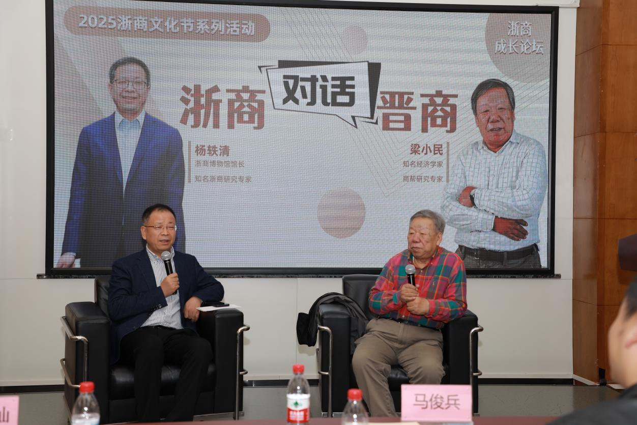 在“浙商对话晋商”环节,梁小民教授与杨轶清教授就商帮文化的传承与创新展开了讨论。