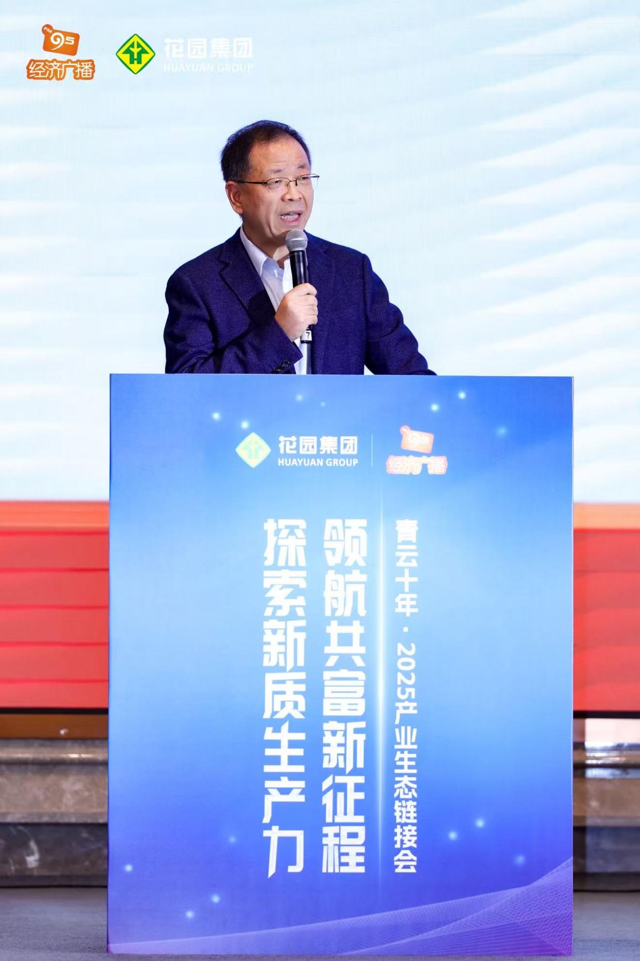以“探索新质生产力,领航共富新征程”为主题的“青云浙商十年·2025产业生态链接会”日前举行。300位青年企业家、产业领军者和专家学者齐聚“中国第一村”东阳花园村,共同探讨浙江经济高质量发展的新动能与新路径。从“四千精神”传承到“数智突围”实践,与会嘉宾一致认为,大力培育新质生产力,是浙江在新时代扎实推动共同富裕的核心引擎与战略抓手。本次大会由浙江广播电视集团经济广播与花园集团联合主办,多家商协会及机构协办。金华市政协副主席杨坚明,浙江省社科联名誉主席、浙商研究会名誉会长胡祖光,丝绸之路集团董事长凌兰芳、中侨实业董事长姜际春、诺尔康神经电子董事长李方平等年度风云浙商和浙江省侨联副主席季志海等知名浙商出席大会。