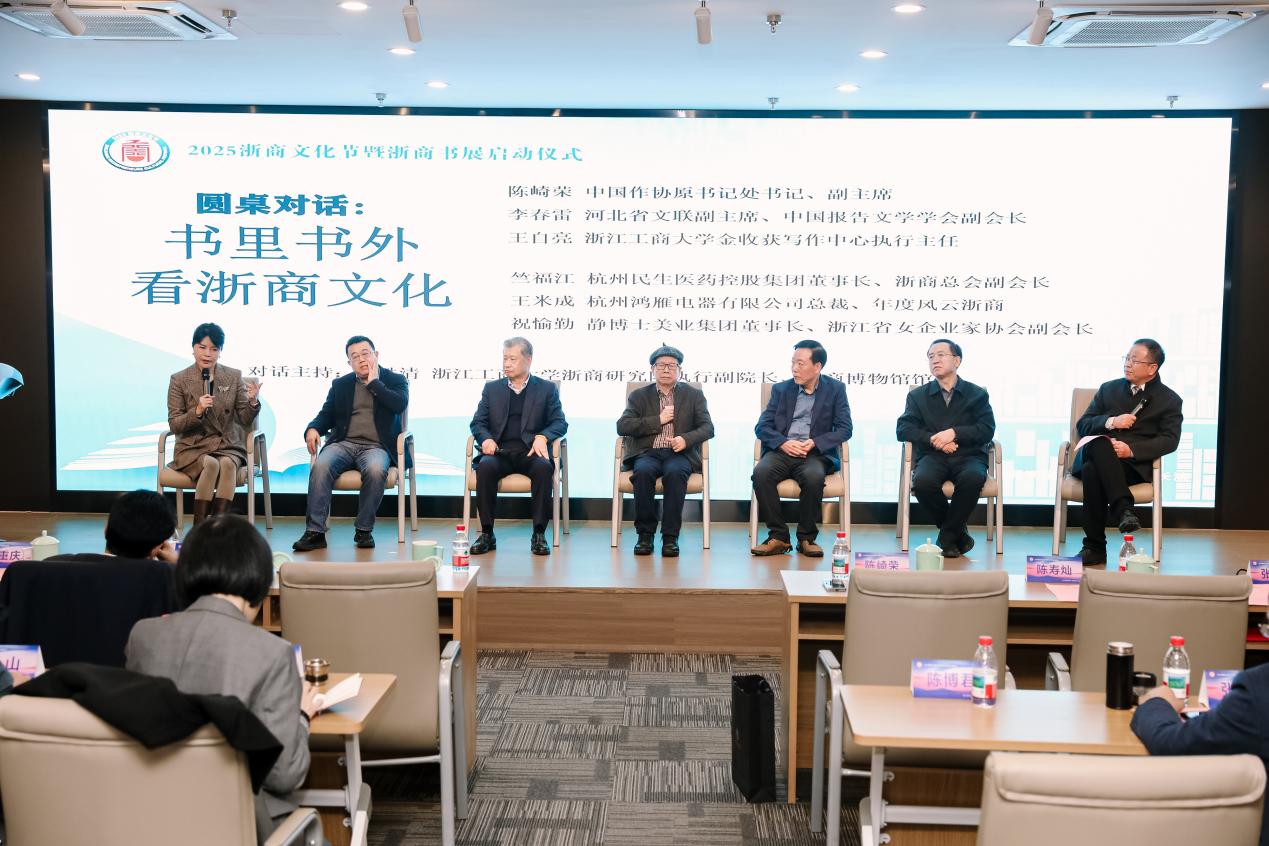 浙商是浙江经济发展的重要支撑、是浙江经济发展的宝贵财富,是浙江的“金字招牌”。浙商文化是浙商之魂,是支撑浙商开拓进取的精神动力。以“钱江潮起涌商道 创业精神气长流”为主题的“2025浙商文化节暨浙商书展”启动仪式12月24日下午在浙商博物馆举行。150多位主办承办单位领导、相关部门及协办方负责人、知名浙商与作家、高校及研究机构专家学者等齐聚一堂,共襄浙商文化盛举。本次活动由浙江工商大学浙商博物馆、浙商研究院、《浙商》杂志、浙商总会学术研究委员会共同主办。长三角民营经济研究会、浙江省民营企业发展联合会、浙江省企业文化建设协会、浙江省浙商研究会、浙江中华文化海外传播促进会共同协办。